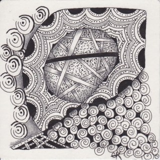 Ok…so I am getting the hang of it. I didn’t do the next couple of them, I was a little intimidated by the tangles I didn’t know and I was remodeling my sewing room (more excuses.) But I did pick it back up at #24. And this time, I sent it in, on time!