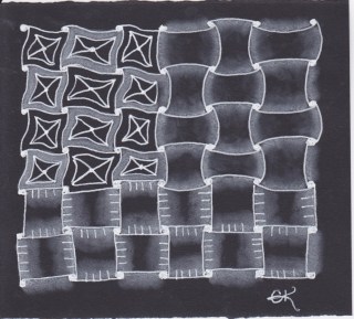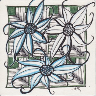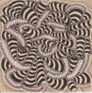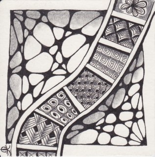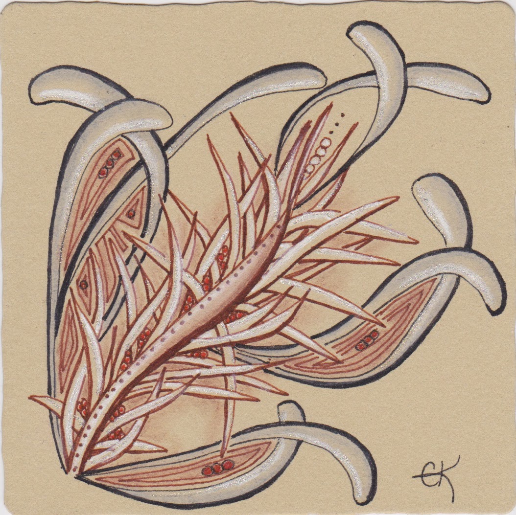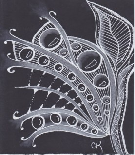 So for Christmas, I had bought myself a copy of the book The Beauty of Zentangle. While perusing this beautiful display of Zentangle Inspired Art (ZIA for short,) I came across a Certified Zentangle Teacher (CZT) in Anaheim who’s work I found rather interesting. Sharla Hicks, CZT, of Soft Expressions (www.softexpression.com) has some wonderful ideas in color, and is a very diverse and eclectic soul (like me!) I was hooked, and I signed up for her entire series (at the time of this writing, I have completed 6 of the 8 classes…and the rest is next Saturday.)