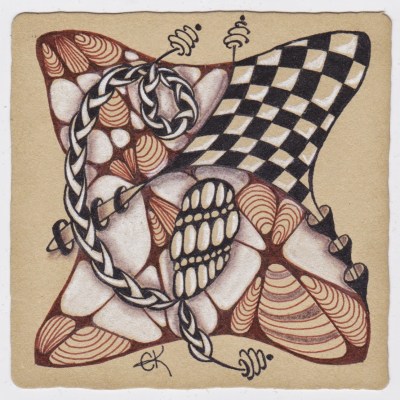 This weeks challenge was to use your initials as the string. I used just my CK…and used all tangles with C or K (well…except for Purk and Zinger.)