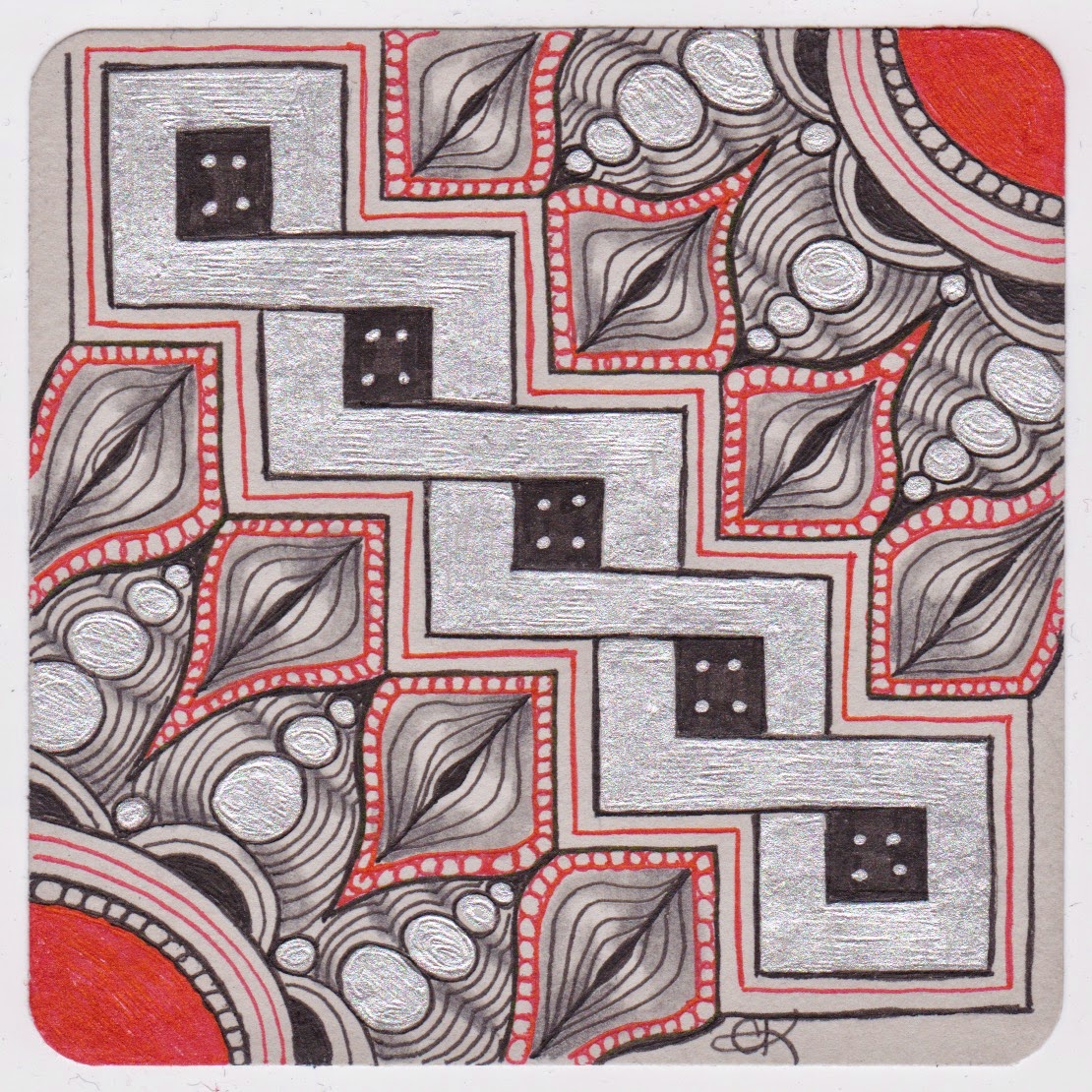 3. Really like the color combination in your challenge tile. Of course it may have something to do with being an Ohio State alum. The tile almost looks gray. The silver marker is a nice touch though.