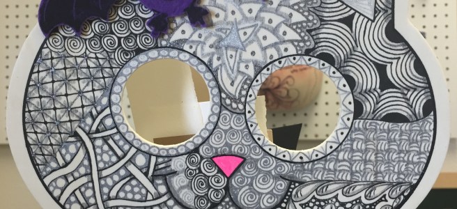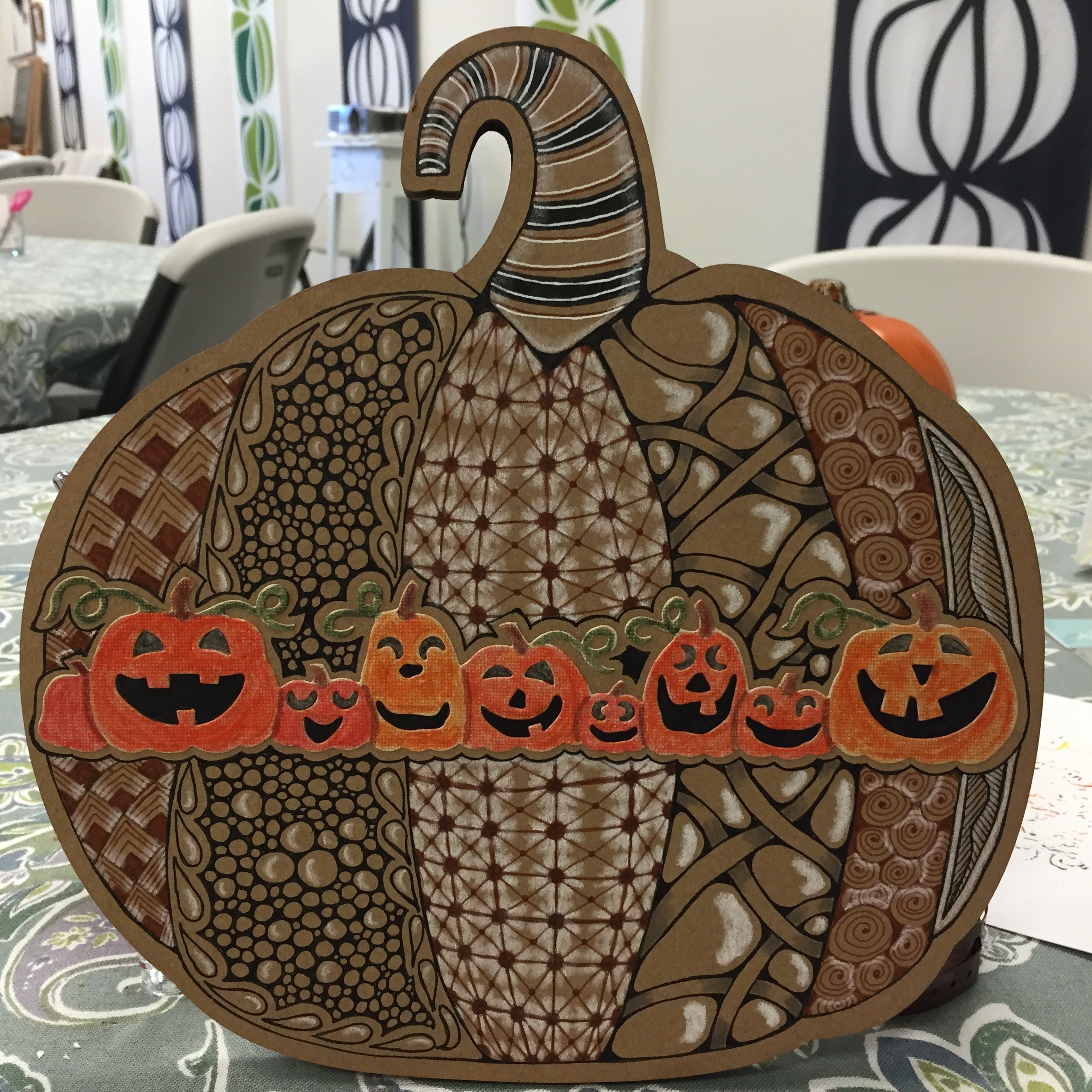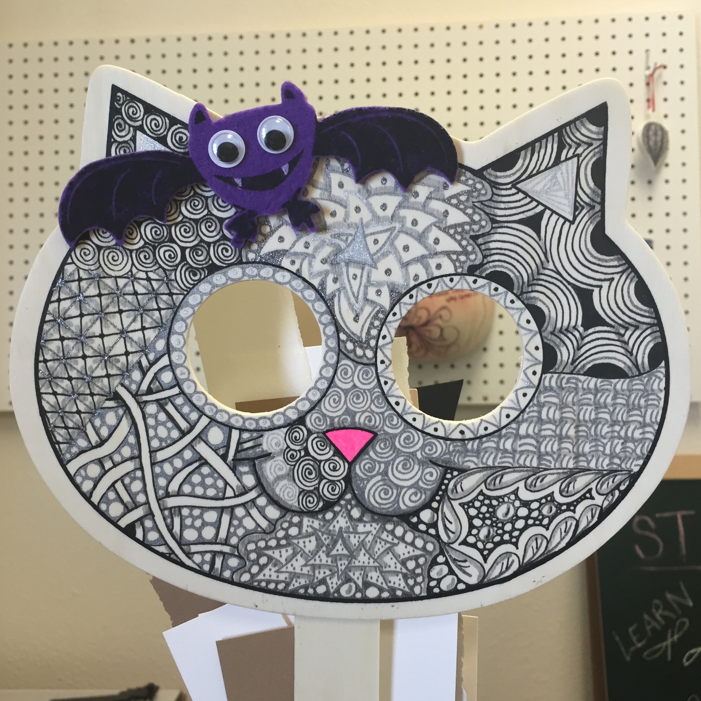 This week, I’ve been working on a lot of Halloween themed things for a class, so I decided to incorporate the Diva Challenge (#238) – a Use My Tangle called Tri-bee by Beate Winkler, CZT. It is a very fun, blooming organic tangle, and I think I will have a lot of fun with it in the future. Of course, there are quite a few other tangles on the kitty as well.