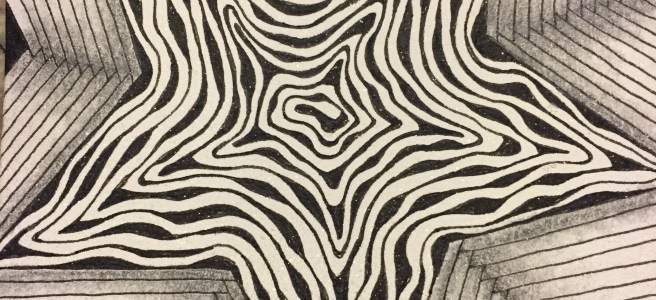 I also had some kids over to the studio, and we had some fun making tangle journals and learning tangles. These are mine. The glue was drying on their decorations, so I didn’t get photos of theirs.