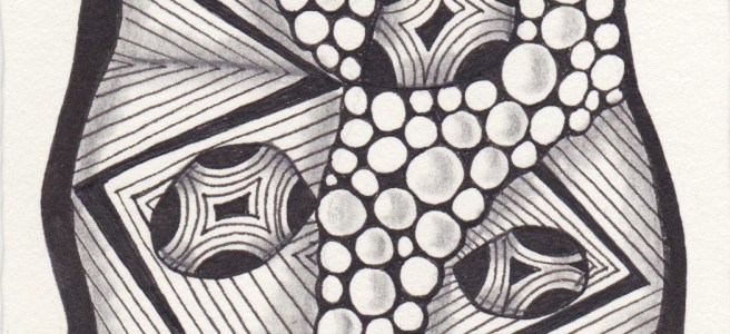 Have you ever felt haunted by your past? I think our past is a part of our journey in life, and shapes us into the people we become. You can either learn from it and grow from it, or let it drag you down. This week, Diva (challenge #255) asked us to revisit a tile/tangle from our past, to see how we have grown. I have only been tangling about 3 years, but I have everything I did in my first year in a book, to show my students MY learning process. While I did have a smallish art background, I like them to see how much I have learned and what practicing has done to my art. For this quest, I went back to my very first tile, pre-class with a CZT, learning out of One Zentangle a Day.
