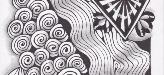 I love your relaxed tile (and the 14 shades of grey for it’s stunning simplicity). I like the idea of using dice to choose a tangle – a good way to encourage putting together tangles you might not “plan”. Had to laugh at your comment about the cat waking you up to be fed – that’s my daily alarm clock!