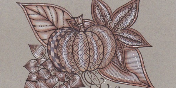 I did get last week’s Diva Challenge (#337) of her tangle, Artoo (in honor of her son) done, as I incorporated it into my Fall Tangles class piece!