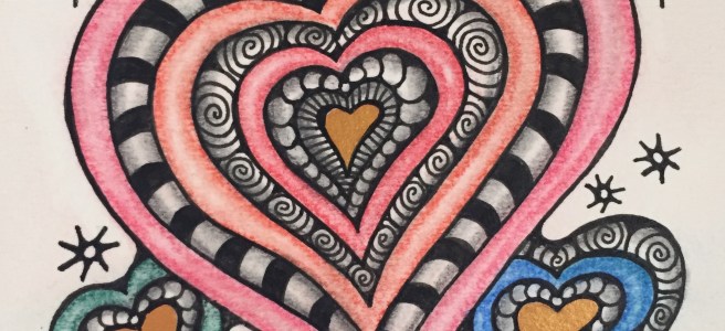 And Diva Challenge #351 was hearts with an Olympic theme. I thought a modified Zedbra was a great tangle for this.